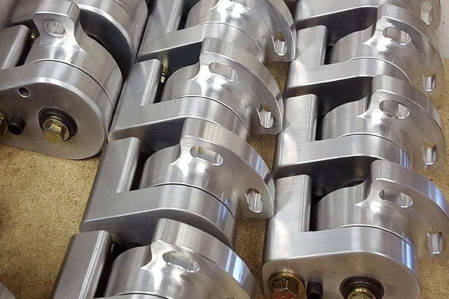 Each tensioner is machined from 9.6 pounds of 6061 Aluminum bar. The shaft is precision machined 4340 Chromoly steel. The tensioner rotates on German manufactured bearings that are precision fit much like an engine bearing. The bores are set for a certain amount of “crush” so that the shaft to bearing clearance is within the range specified by the bearing manufacturer.