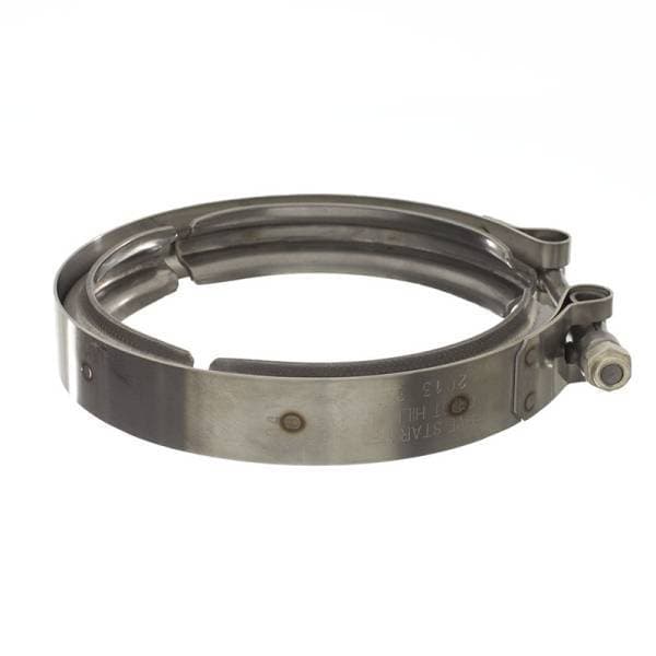 Depending on the size needed, the v-band clamps are designed to accommodate 4" through 5" sized tubing found on most blower or turbo applications. Also, it's an extremely useful connector for race applications. First, the clamp can be quickly removed and easily re-installed. There are no hoses to “stretch” over the tubing or throttle body. The use of a v-band clamp can eliminate wasted time between rounds.