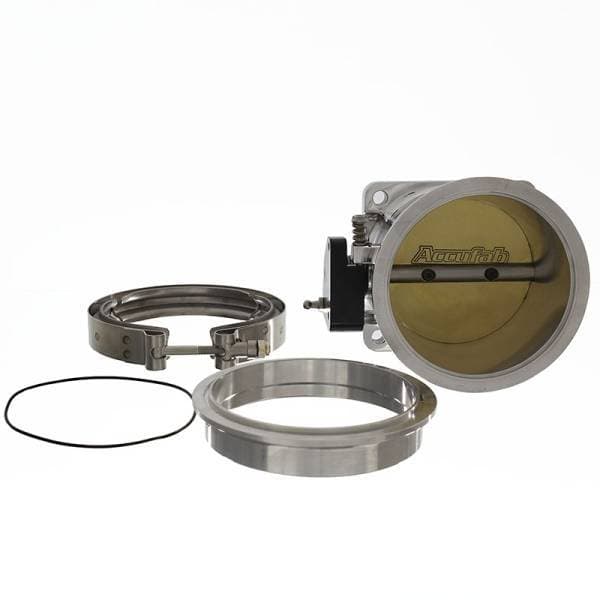 Accufab's V-Band throttle body version is designed to be used with a v-band instead of a hose clamp, v-band sold separately. This version features a full body stainless steel shaft, 3 position linkage arm, hard anodized black, with a threaded ball stud, o-ring groove on the back, plus, it's sealed and air leak resistant up to 100 psi
