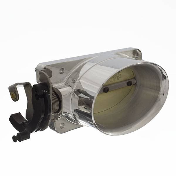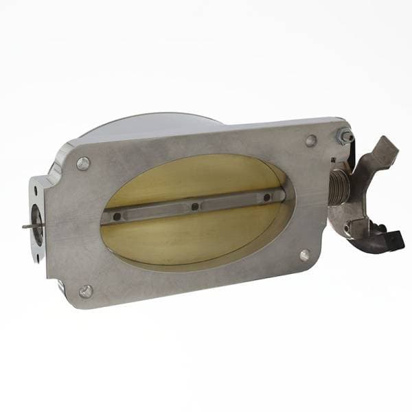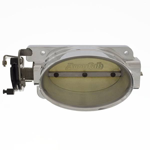 Better Air Flow for More Power. Available in Elliptical or Oval blade. The first throttle body is our standard ELLIPTICAL single blade which flows 1284 cfm compared to the stock twin blade design which flows 1089 cfm. Dyno tests on a stock vehicle show a 5 to 7 hp gain. The second throttle body is our special OVAL single blade and it flows 1696 cfm which is an additional 607 cfm over stock. However, we manufactured this throttle body specifically for engines making 550hp+ or using a KenneBell supercharger. Horsepower gains vary depending on your vehicle modifications. The standard elliptical blade (1284 cfm) is shaped like an egg. The oval blade (1696 cfm) has top and bottom edges that are completely straight and the blade is only rounded on the ends. Exceptional Quality. Accufab's quality is second to none - this throttle body is CNC machined from 356 billet aluminum, and the exterior is polished to an eye-catching finish. The shafts are also CNC machined from stainless for durability and quality, with brass blades and the highest quality bushings, bearings and screws. Manufactured in the USA.