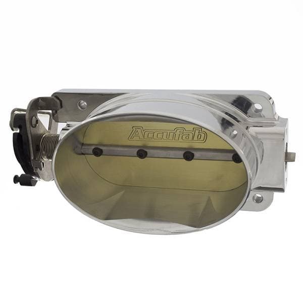 Exceptional Quality. Accufab's quality is second to none - this throttle body is CNC machined from 356 billet aluminum, and the exterior is polished to an eye-catching finish. The shafts are also CNC machined from stainless for durability and quality, with brass blades and the highest quality bushings, bearings and screws. Manufactured in the USA.