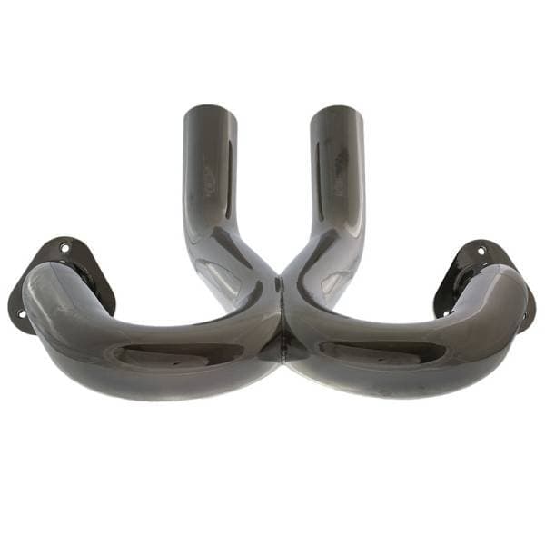 Accufab has developed new performance parts for the 2005-2006 Ford GT. In additiona to this X-pipe, there is a dual blade 75mm throttle body or new single blade throttle body. The throttle body is made from the finest billet aluminum, polished to a mirror finish. It also features a stainless steel split shaft, brass blades and the highest quality bushings, bearings and screws. Dyno tests on a stock vehicle have shown an increase of 4 to 5hp. However, dyno tests on our Project GT, which has other performance modifications, showed an increase of 11hp!