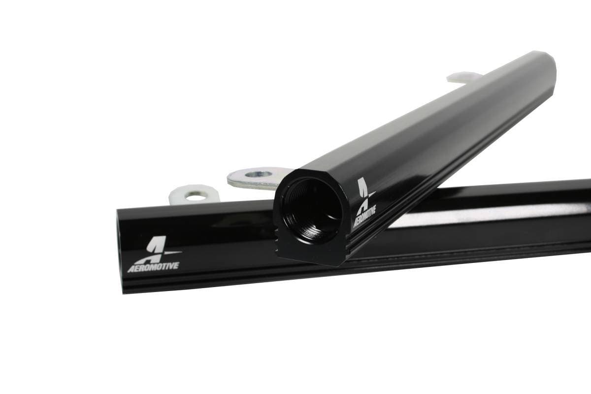 Original equipment for the 2012 Ford Cobra Jet Mustangs. Engineered to fit any Ford 4-valve 5.4L like those in the 2008 Cobra Jet and the Shelby GT500, these fuel rails can drastically increase the flow to your injectors. Support more power with more consistent flow. It's the reason Ford engineers chose Aeromotive to fuel the 2012 Cobra Jet. Now you can turn your SN97 Mustang into a Cobra Jet with the Original Equipment from Aeromotive. Fits 2008 and 2012 Ford Cobra Jet Engines (5.4L 4-vlave). Black anodized finish. ORB-08 inlet and outlet ports. 5/8 internal bore.