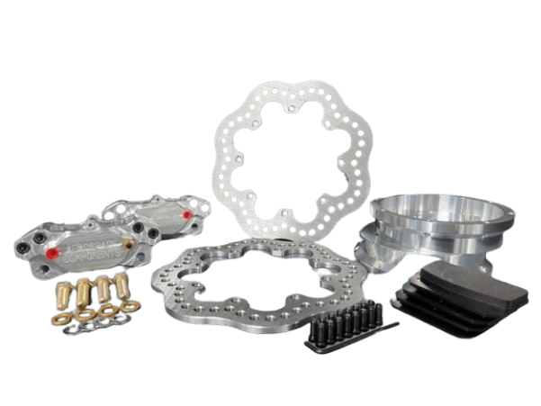 This kit will drastically reduce the weight of your brakes and are worth at least 1/10 in the quarter, but are strictly for drag racing use because the rotors are not vented and will warp under street driving use. If you need brakes for street use, take a look at our Aerospace street brakes for your vehicle. These are the brakes which Aerospace recommends For Cars Under 3300lbs.
