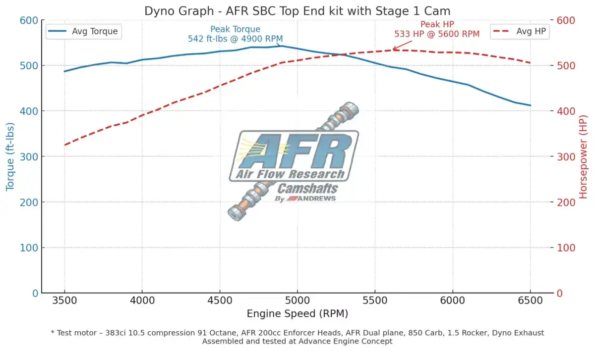 AFR’s new Stage 1 camshaft—developed in partnership with Andrews Camshafts—are now available in a dyno proven package paired with the the AFR SBC Enforcer Top End Kit. These cams are designed to work seamlessly with AFR Enforcer cylinder heads, offering a balanced combination of throttle response, drivability, and serious power gains. Whether you're building a street cruiser or a more aggressive weekend machine, you can now choose the cam that best matches your performance goals—all in one proven, bolt-on package. Add the cam. Skip the guesswork. Make more power.