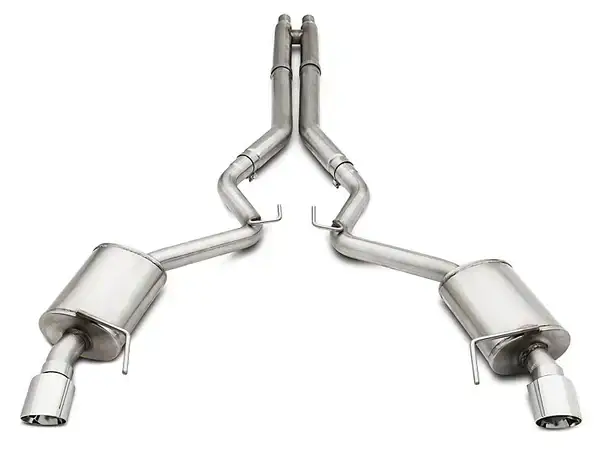 American Racing Headers Ford Mustang S550 If a deeper tone with virtually no high pitch rasp is what you're after on your 2015 V8 Mustang, ARH has the answer with our Pure Thunder Catback Muffler System. With the ability to handle tremendous power, our 100% US made mufflers are all 304 S/S and feature our 4" polished double walled tips that are fully adjustable. This allows you to position the tips for the exact appearance you want. Comes standard with our 3" H-Pipe or optional 3" X-Pipe.