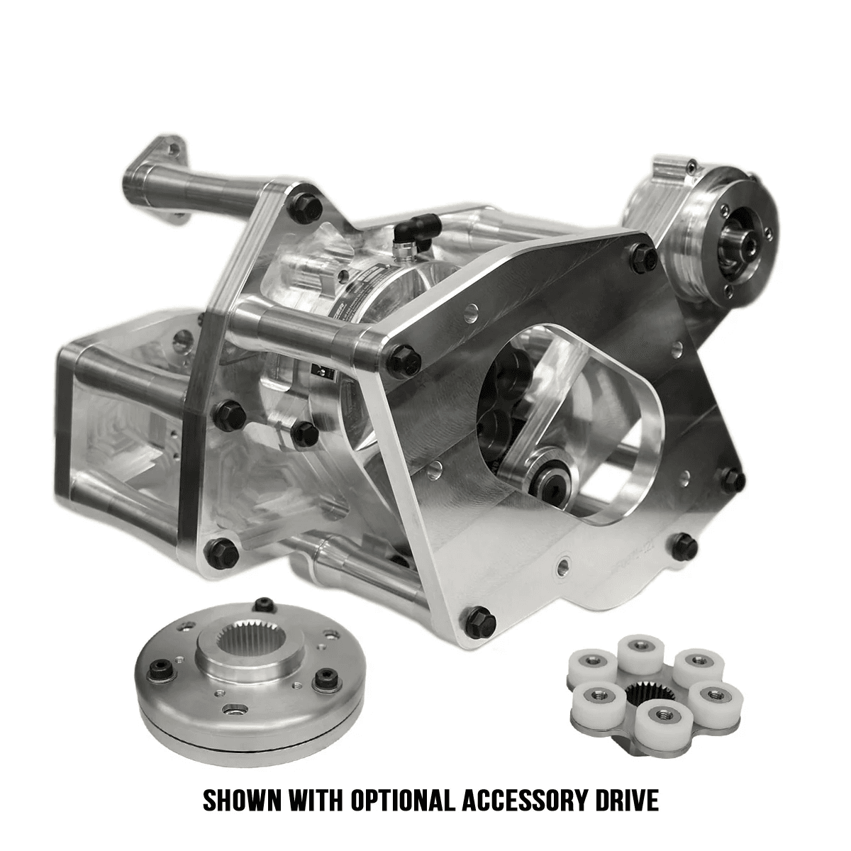 Optional dual accessory drive to run 2 accessories, i.e. fuel pump, oil pump, vacuum pump, etc.