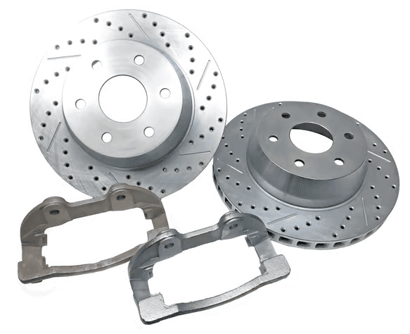 Slot, Drilled & Zinc Plated Finish Provides a Brilliant Visual Impact Behind Large Open Wheels