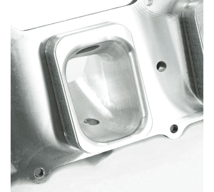 The design incorporates 2 runners and an interchangeable plenum. The seal is generated by 8 entrapped o-rings at the runner/plenum interface, and is clamped by 20 -M6 Stainless steel socket head cap screws. The port seals are achieved SAE o-rings seated in a dovetailed o-ring groove. Both the port mouth radius and the port match is CNC machined. The TRInity incorporates 2-1/4 -27 NPT ports on the side of the throttle body boss and a 3/8-18” NPT on the rear. The manifold is available in Natural or Black Satin Texture powder coat finishes . The manifold comes semi-assembled and includes all the hardware required to bolt it on. Runners and plenums can be purchased separately.