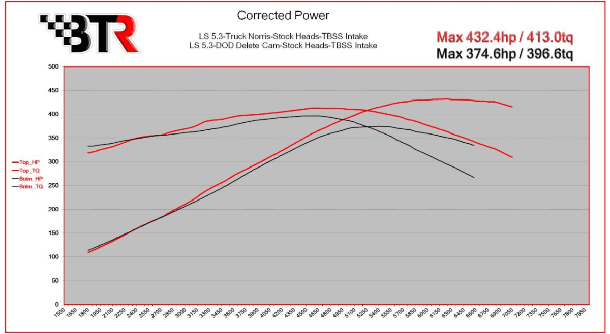 *All Dyno testing was done with an engine dyno (Expected gains are based on a stock 5.3L engine w/ TBSS intake which made 374 CHP and 396 CTQ)