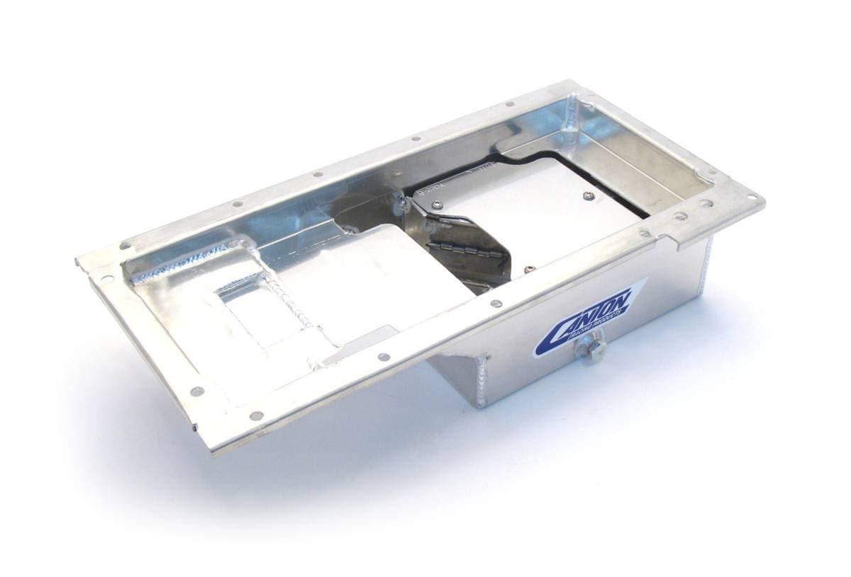 FEATURES: Pan features a Pro-Style block high oil recovery pouch, Works with OEM windage trays. Drag Race Trap Door Baffle Assembly. Removable Windage Anti-Slosh Baffle. Provision for 20mm oil temperature sensor. Magnetic Drain Plug.
