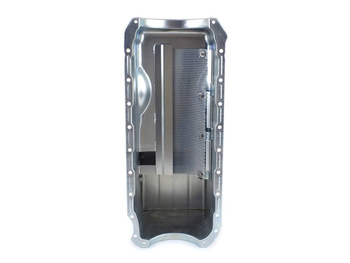FEATURES: The pan features our competition oil recovery system, which includes a crank scraper and one-way screen windage tray combination designed to maximize power, and a trap door baffle for oil control.