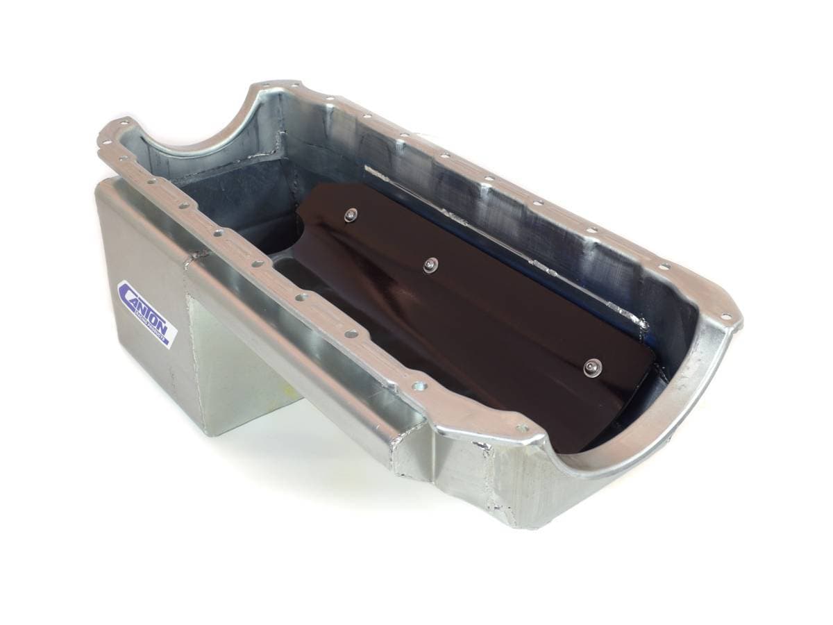 OIL PAN PART #: 13-334BLK Canton Drag Race Chevy BBC Mark 4 Blocks Oil Pan Using Offset Aftermarket Starters.
