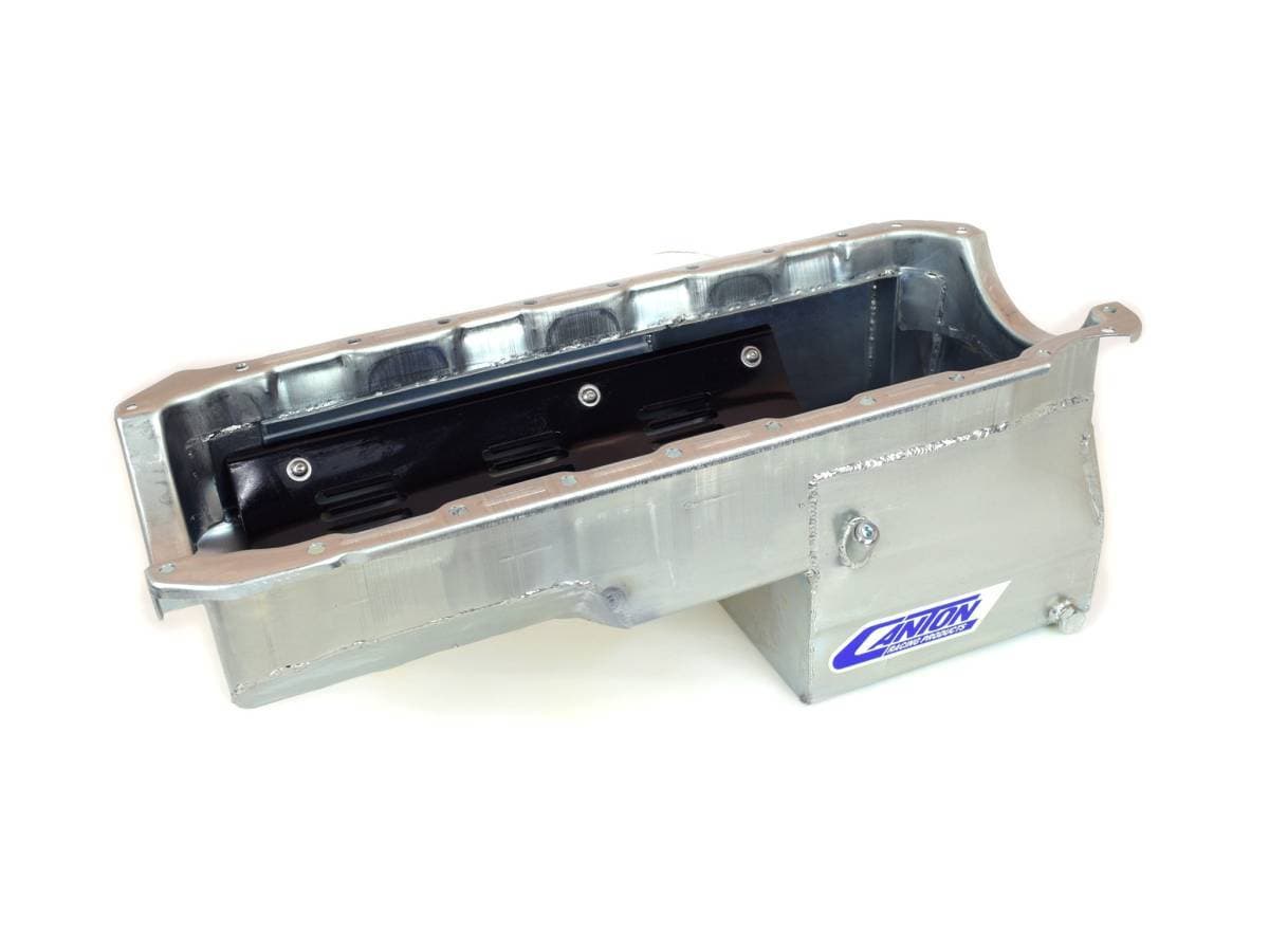 OIL PAN PART #: 13-334 Canton Drag Race Chevy BBC Mark 4 Blocks Oil Pan Using Offset Aftermarket Starters.