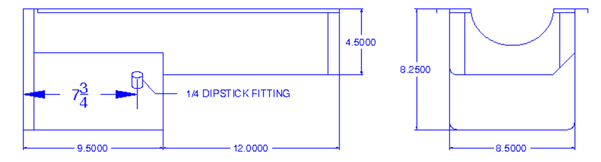 SIZE: It has an 8" deep by 9-1/2" long sump and a 6 qt. system capacity.