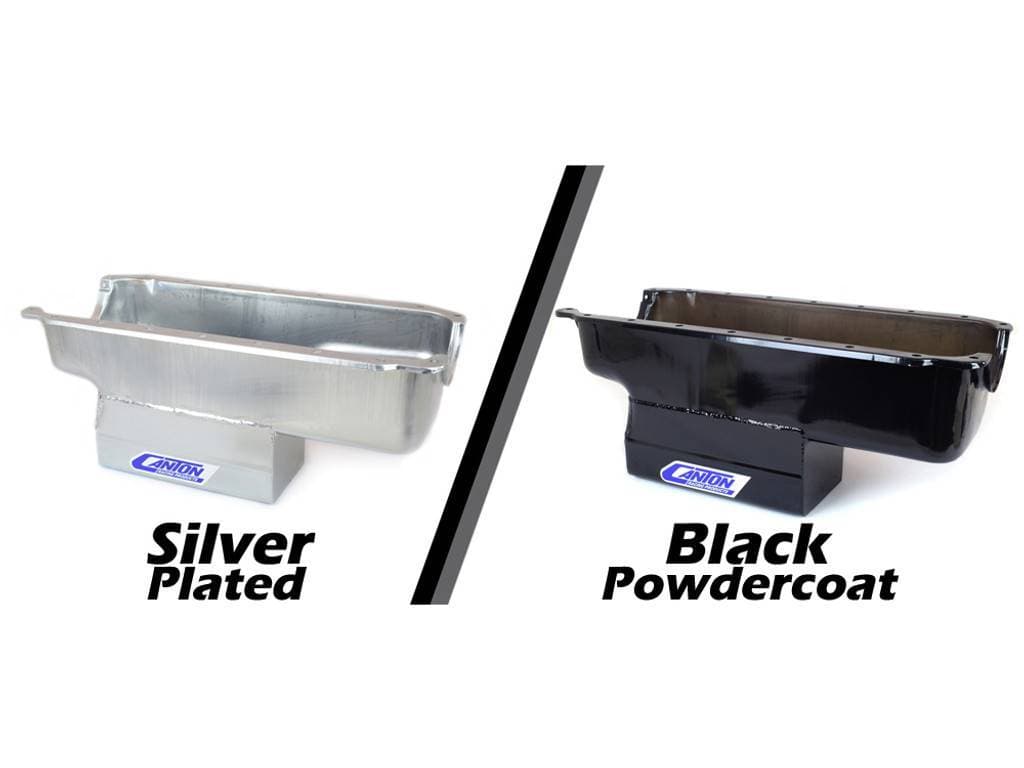 This street / strip oil pan for SM. Block Chrysler 360 engines fits most production chassis. It features a deep sump and built in slosh baffle for oil control and a magnetic drain plug. Sump is 9" deep and provides a 7-quart system capacity.
