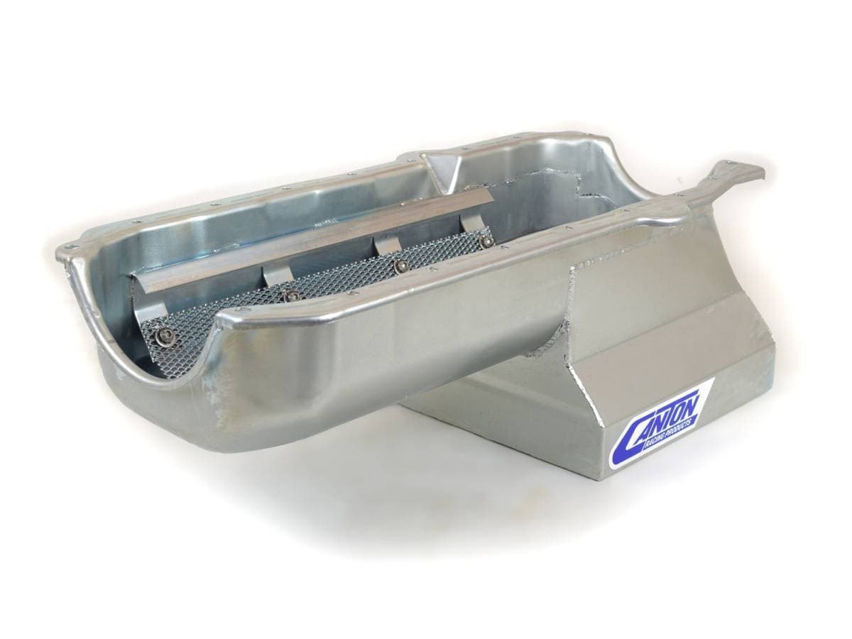 OIL PAN PART #: 13-120M Canton "T" Sump Drag Race Chevy SBC 1980-1985 Blocks w/ Right Side Dipstick Oil Pan.