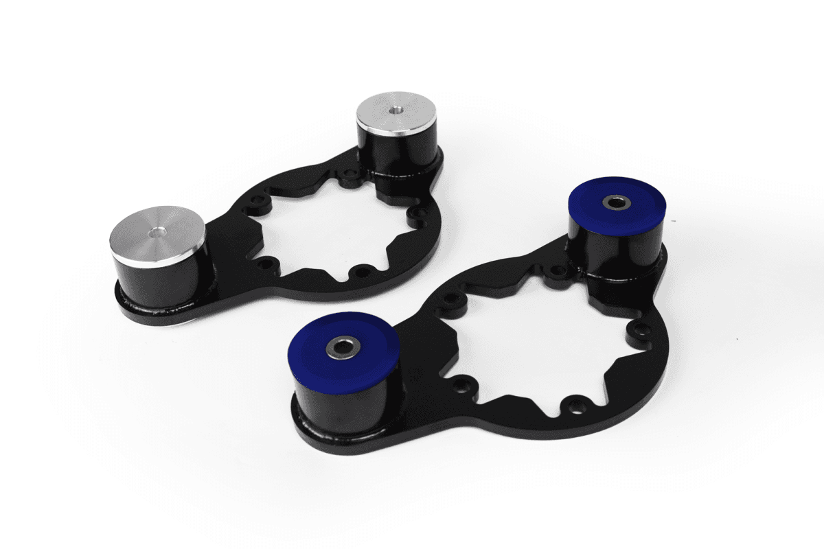It is worth noting that most wheel hop related issues rarely cause an immediate failure, with certain exceptions. The result of repeated cycling torque spikes will often weaken the material of a given component such as an axle bar or stub shaft. Then each subsequent hit will continue to weaken the component until it fails completely. If you know that you have driven through a particularly abusing situation, it would be wise to pull the axles and assess the splines of the inner and outer stub shafts as a maintenance procedure. If they have started to twist or shift, then you might be able to prevent a more catastrophic failure. We encourage all end users to read up on the appropriate measures that they can take to help prevent wheel hop with their specific vehicle. This can be anything such as aftermarket bushings, shocks, springs, control arms, tire type, or excessively low tire pressure. Two of the most fundamental pieces we look at to help control rear end movement and prevent wheel hop start with the cradle and differential bushings. Both of these bushing sets are often very soft from the factory and although they provide smooth ride quality, they allow a considerable amount of movement in a performance scenario. Which can lead to a number of concerns or issues.