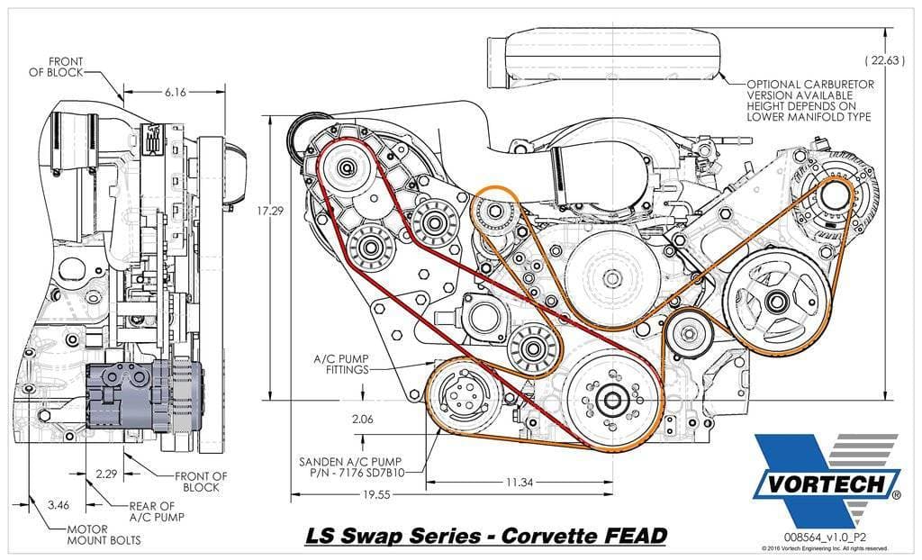 Designed for vehicles equipped with fuel injected Chevrolet engines using LS1/LS2/LS6 style manifold and C5/C6 Corvette FEAD (GM 19257325 or 19202977 or equivalent accessory drive required).