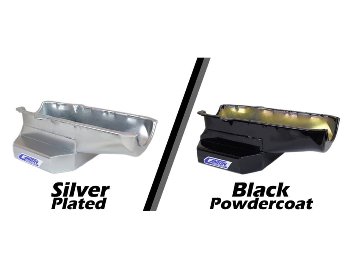 OIL PAN PART #:15-260BLK pan for direct bolt-in for pre-'80 blocks with left side dipstick. Powdercoated Black