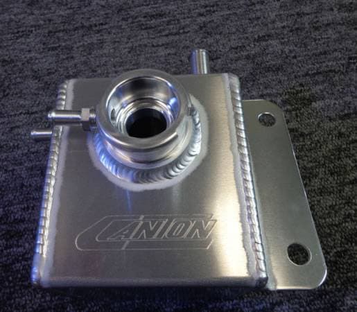 This 2001-2015 Subaru WRX & STi coolant header expansion / fill tank features a billet radiator style neck, this is the unit that sits on top of the WRX & STi's headers. This Canton expansion tank is built with .100" thick aluminum and has a billet aluminum neck with a barbed overflow fitting and accepts standard radiator caps. 25 oz Capacity (36% increase over stock)