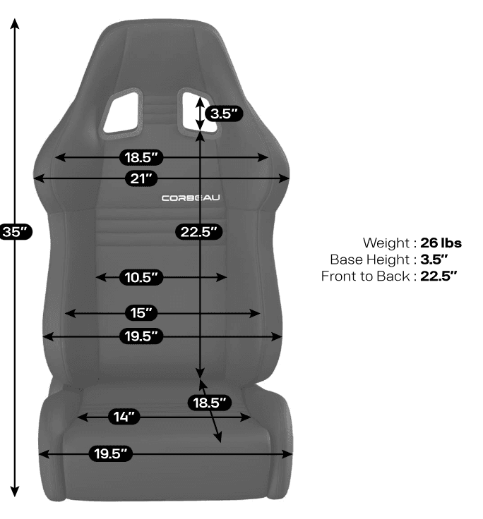 Infinite recline: The fingertip controlled reclining mechanism allows the seat back to be adjusted to the ultimate driving position. Corbeau reclining technology allows with just the lift of the lever, the seat back to be immediately returned to the full upright position.