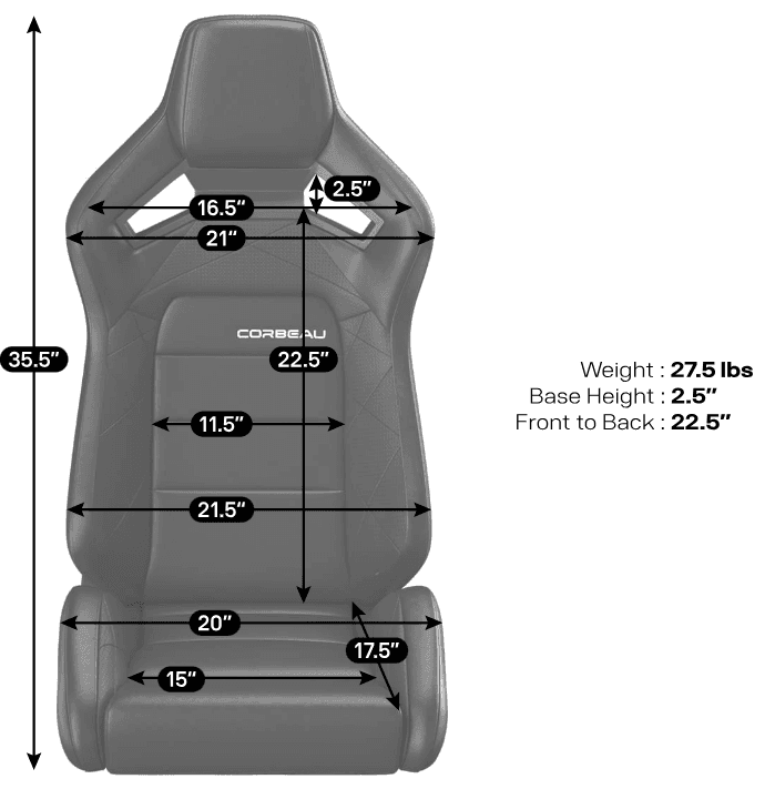 Infinite Recline: The fingertip controlled reclining mechanism allows the seat back to be adjusted to the ultimate driving position. Corbeau reclining technology allows with just the lift of the lever, the seat back to be immediately returned to the full upright position.