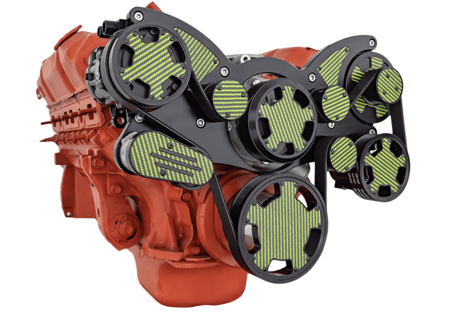 Saginaw Power Steering Pump extends far right dimension to 16" from water pump pilot center (originally 11 1/4")