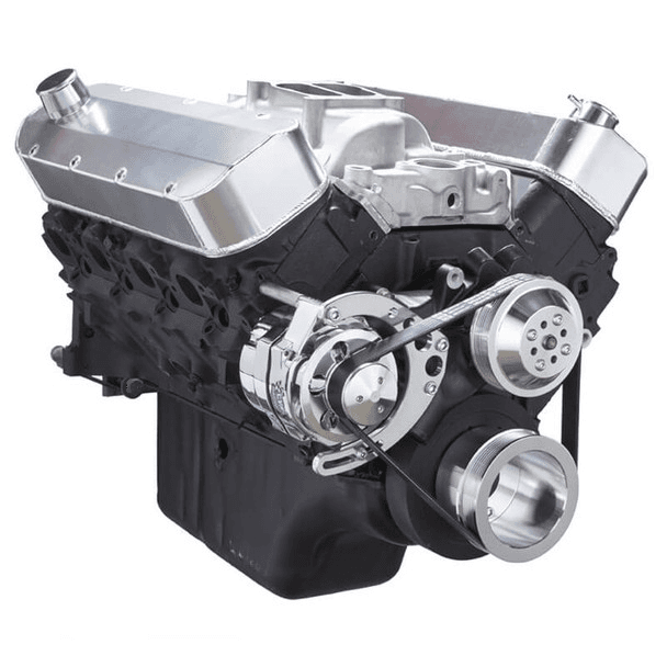 The BEAST 8 Track Serpentine System for Big Block Chevy engines with alternator Only. Unique 8 Rib Serpentine pulley design increases grip, reduces stretching and prevents belt slippage when compared to traditional 6 Rib designs. Mounts alternator on the passenger side in a mid-mount configuration. Uses standard Chevy long water pump.