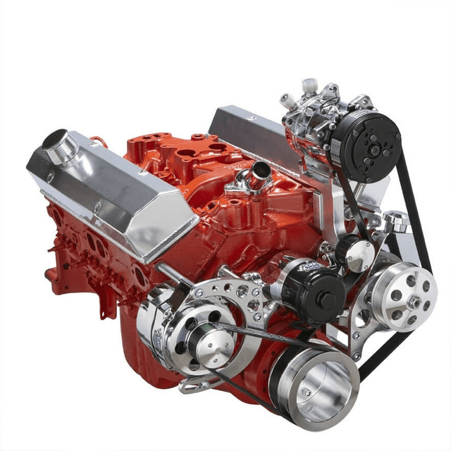 Note: This kit will fit 283, 302, 305, 327, 350, and 400 Small Block Chevy Engines. Power Steering Pump, Alternator, AC Compressor & High Flow Electric Water Pump Not Included