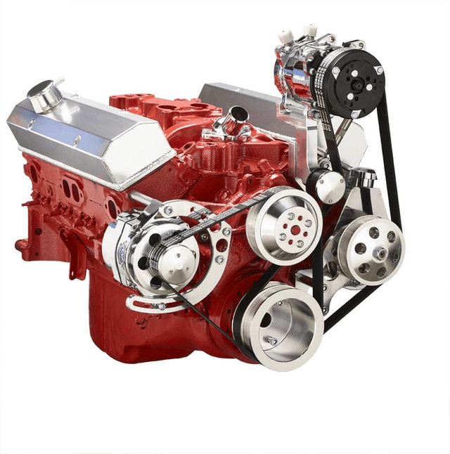 Note: This kit will fit 283, 302, 305, 327, 350, and 400 Small Block Chevy Engines. Power Steering Pump, Alternator, AC Compressor & High Flow Water Pump Not Included