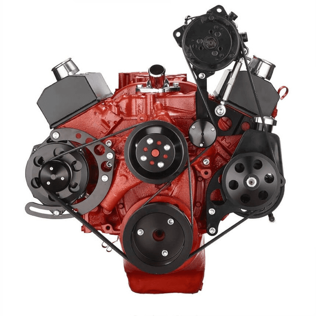 Note: This kit will fit 283, 302, 305, 327, 350, and 400 Small Block Chevy Engines. Power Steering Pump, Alternator, AC Compressor & High Flow Water Pump Not Included