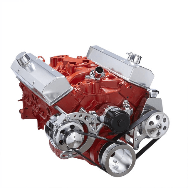 Note: This kit will fit 283, 302, 305, 327, 350, and 400 Small Block Chevy Engines. Power Steering Pump, Alternator & High Flow Electric Water Pump Not Included