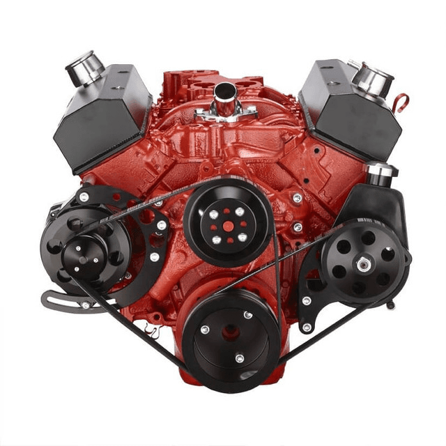 Note: This kit will fit 283, 302, 305, 327, 350, and 400 Small Block Chevy Engines. Power Steering Pump, Alternator & High Flow Water Pump Not Included
