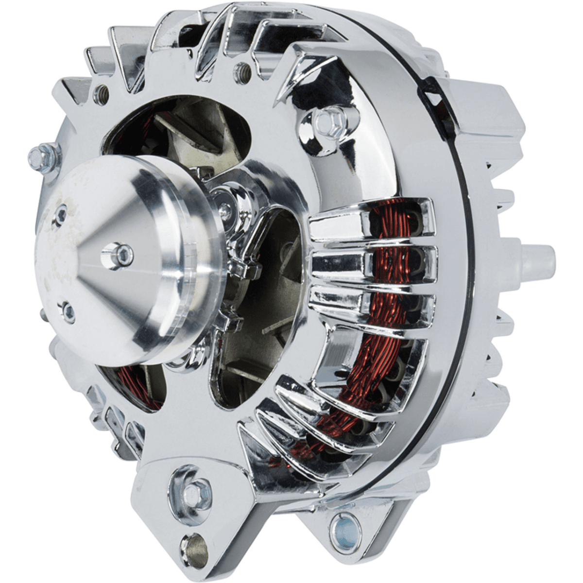 At CVF Racing our alternators are specifically designed to work with pulleys at low RPM so you can be certain that your alternator will charge throughout the RPM range. A lot of high amp alternators just shift the RPM range higher to get more power at the expense of low end charging. (Kind of like a really big cam)