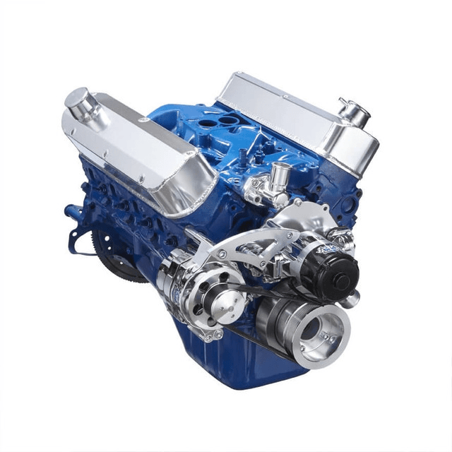 Requires either GM Saginaw keyway pump or ford power steering pump with steel reservoir (not the newer one with plastic reservoir)