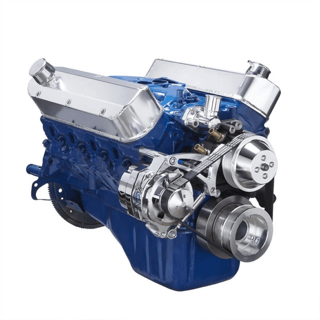 Requires either gm saginaw keyway pump or ford power steering pump with steel reservoir (not the newer one with plastic reservoir)