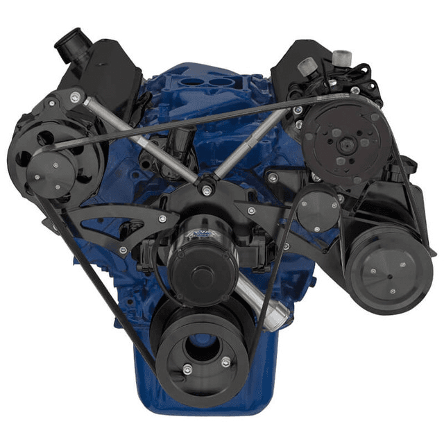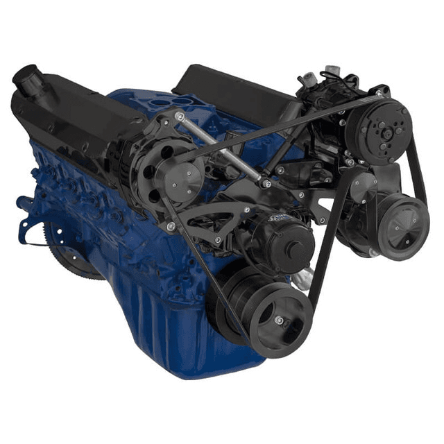 Requires either GM Saginaw keyway pump or ford power steering pump with steel reservoir (not the newer one with plastic reservoir)