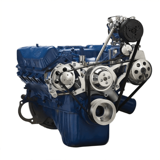 Note: Requires Saginaw P series power steering pump with keyway shaft and bolt hole in lower right corner on back of pump