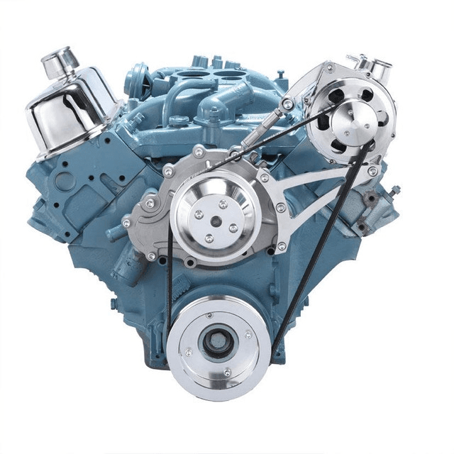 Requires 4 bolt pattern on Harmonic Balancer and 11 Bolt water pump that is 4.5" tall