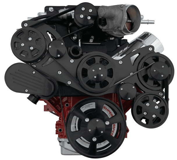 CVF Wraptor LS 8-Rib FEAD System For Edelbrock Superchargers with AC, Power Steering and Alternator - Black (Camaro Spacing)