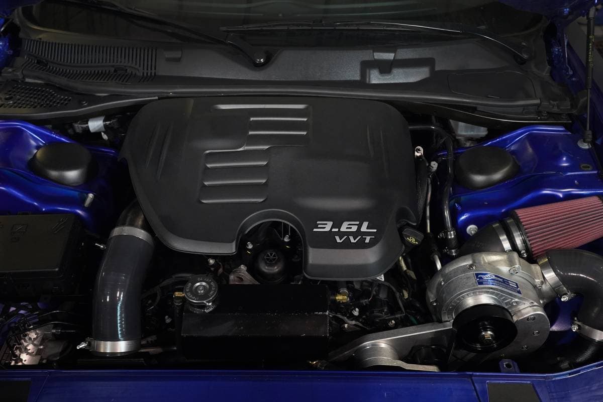 Power gains are 45% on normal premium pump gas from just 7 psi of boost. That boost comes from the industry-leading self-contained P-1SC-1 supercharger before being chilled down by the same massive air-to-air intercooler we use in the SRT 6.4L Challenger systems. Yes, it's a bit overkill, but so are our CNC billet aluminum brackets and dedicated drive belt. All of these features add up to a worry-free system that we back with a 1-year warranty (available 3-year warranty).