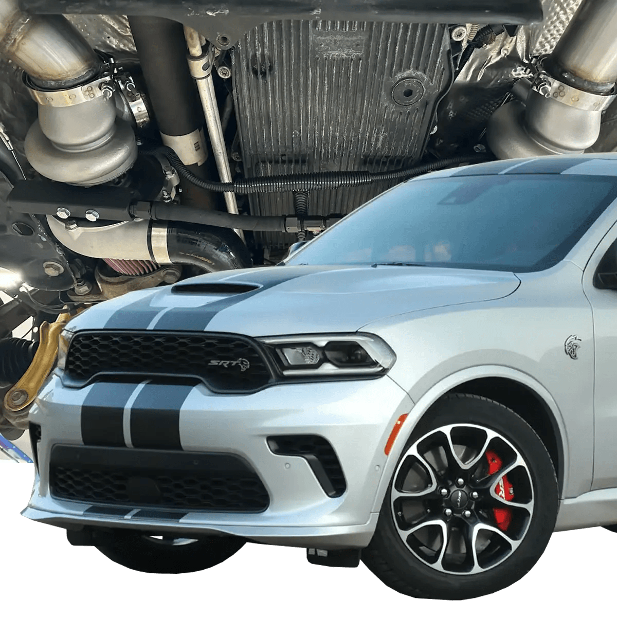 The factory heat exchanger does a great job of cooling the intake charge while the turbos produce an efficient boost to aid in power production. This kit can be adjustable from a little above stock to over 2000+ RWHP. So, if you are looking for a small bump in power to start with or a larger jump later, this is your kit.