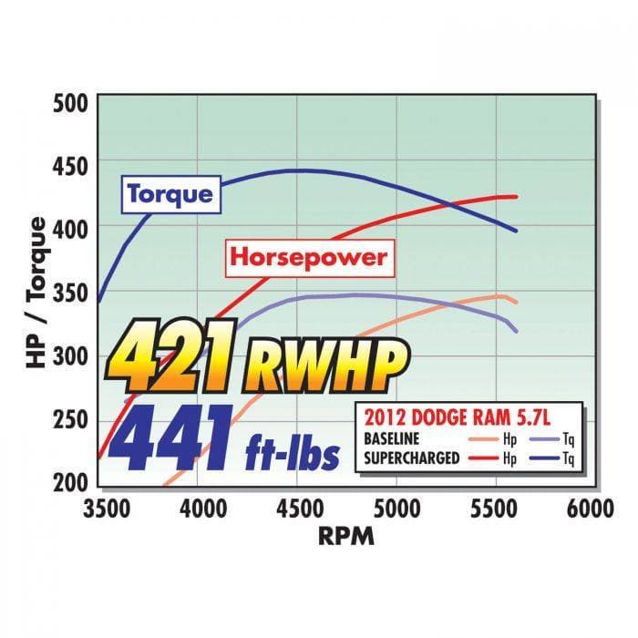 The Edelbrock Supercharger System part #1538 is designed for your 2009-14 5.7L HEMI Dodge Ram Truck and produces 439 RWHP and 444 RWTQ. The core of each system is the Eaton Gen VI 2300 Supercharger rotating assembly with a four-lobe design with 160 degrees of twist for maximum flow, minimum temperature rise and quiet operation for excellent drivability. We also designed our superchargers with an integrated bypass valve to help eliminate parasitic loss under light throttle, improving mileage potential. Our unique and efficient inlet configuration results in a shorter, less restrictive intake path for improved airflow, without the need for a jack-shaft. Keeping the air cool is a high-capacity air-to-water intercooler and low-temp heat exchanger.