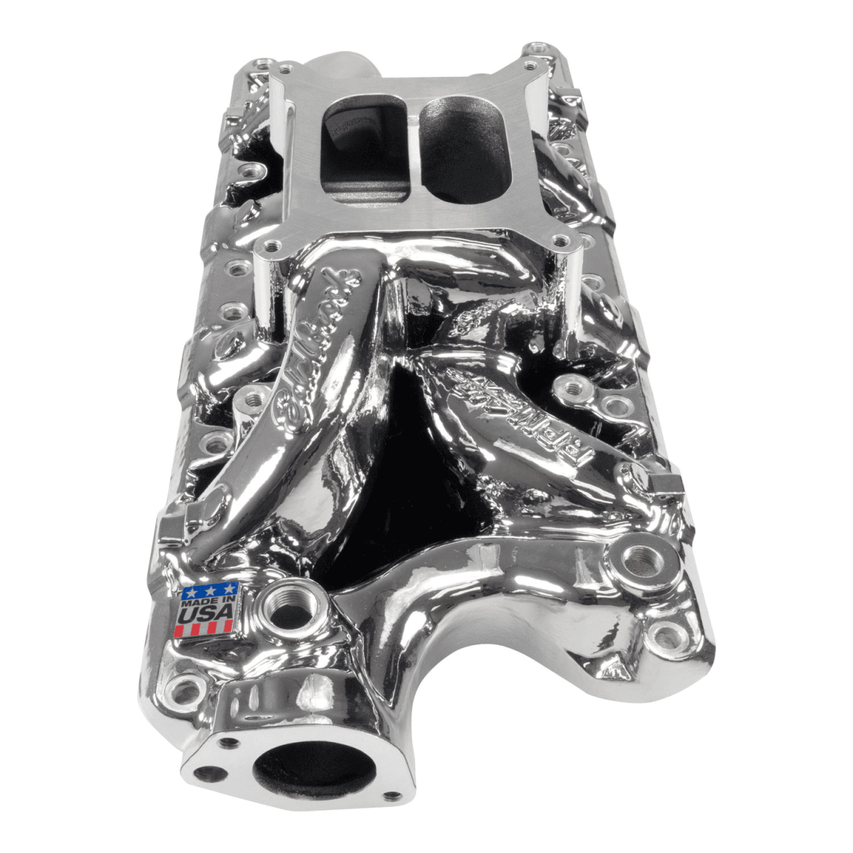 Edelbrock Part #7521-CP RPM Air-Gap intake manifold is designed for the small-block 302 CID Ford V8 or 331-347 stroker applications. The RPM Air-Gap incorporates the same race-winning technology that?s been used on our Victor Series competition intakes and is the perfect manifold for hot rodders, street machine enthusiasts, bracket racers or any builder looking for optimum performance in the 1,500-6,500 RPM range with a serious look of horsepower under the hood.
