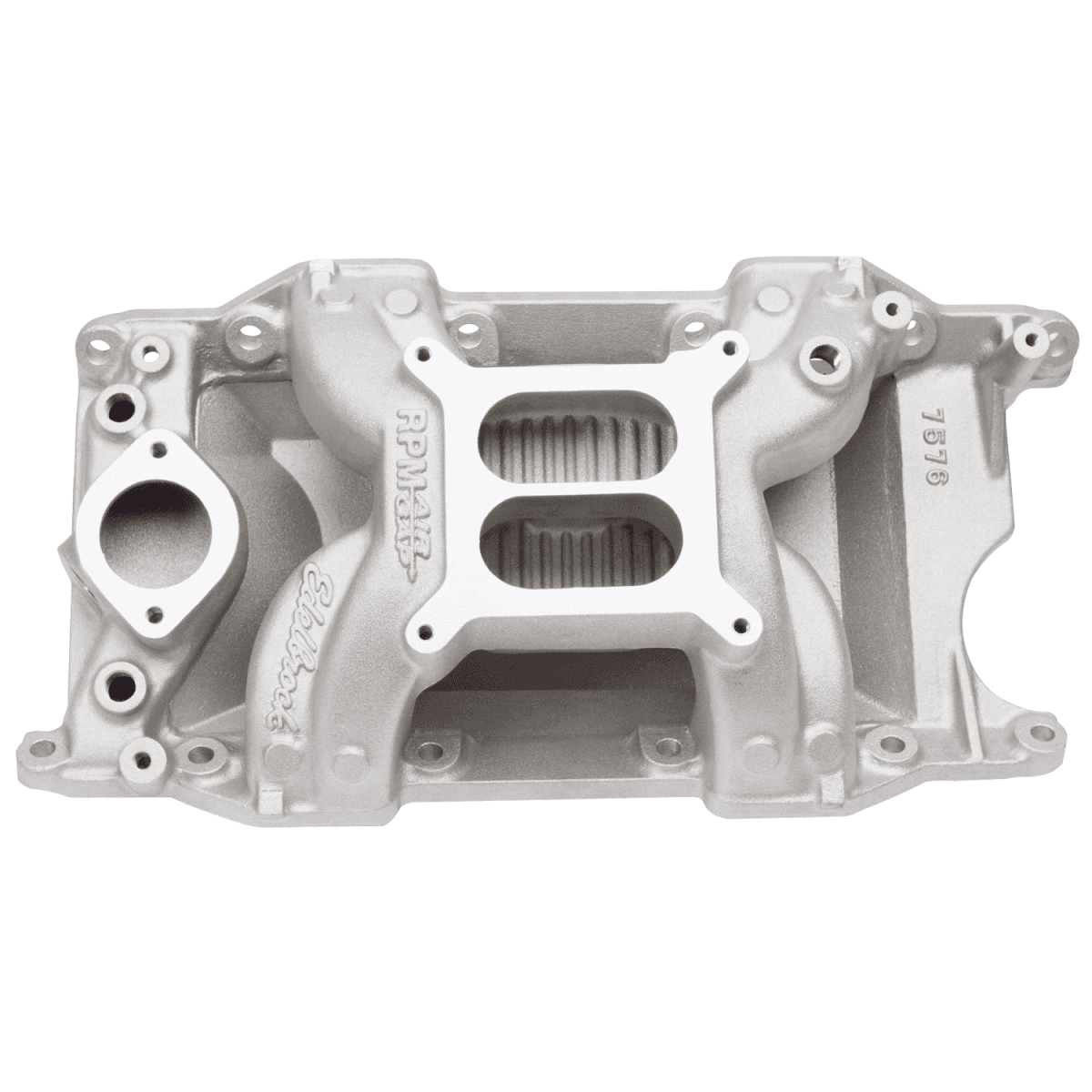 Edelbrock RPM Air-Gap Magnum intake manifold is designed for 1992 & later 5.2L (318 c.i.d.) and 1993 & later 5.9L (360 c.i.d.) Chrysler Magnum V8 applications. The RPM Air-Gap manifold allows the use of a carburetor for engine swaps in early muscle cars and street rods. This dual-plane manifold design incorporates the same race-winning Air-Gap technology that's been used on our Victor Series competition intakes for decades for outstanding performance in the 1500 to 6500 rpm range. Will not fit 1992 and later Magnum engines. Includes nitrous bosses.