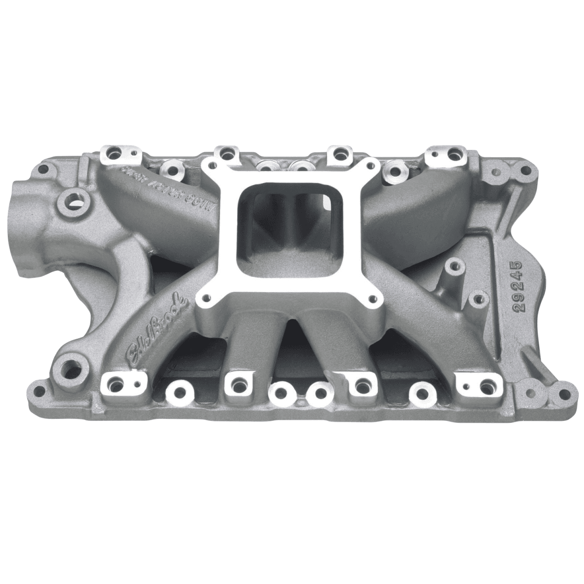 Edelbrock part #29245 Super Victor 351W EFI intake manifold is designed for high rpm or large displacement competition 351 Windsor Ford V8's with a deck height of 9.5". It's ideal for drag racing or oval track engines operating between 4500 and 8500 rpm. This intake manifold can be used with ported factory cast iron heads, however aftermarket aluminum heads are recommended, such as Edelbrock Victor Jr. #77169 or Victor heads #77219 for ultra high-horsepower. Runners have a 3.20 square-inch cross sectional area.