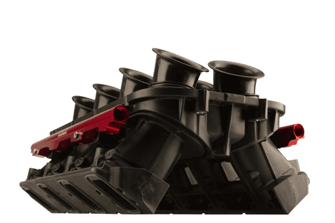 The LSXHR 103mm Intake Manifold for LS3 Rectangular Port Applications is the industry's first polymer tunnel ram-style high ram intake manifold and is ideal for generating maximum power in boosted and naturally aspirated engines. Rated for up to 45psi of continuous pressure. Includes "tall" runner stacks medium and short runner stacks are also available. Average 30 HP gain between 5,000 and 7,500 RPM over competitors' high ram intake manifolds. Reversible top allows for forward- or firewall-facing throttle body installations. Two nitrous nozzle bosses per runner for clean and easy direct port system installations. Compound fuel injector angle aims spray pattern for ideal atomization, resulting in maximum power production and superior drivability.