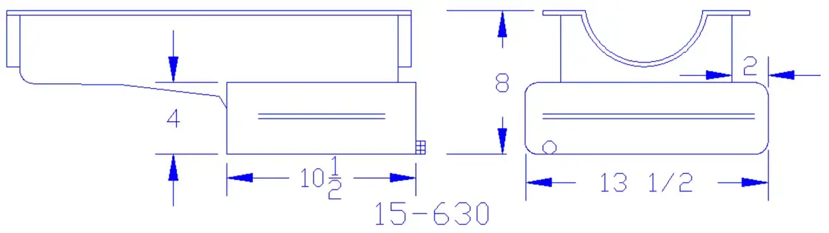SIZE: 8" deep, 13-1/2" wide, 10-1/2" long front sump with a 9 qt. system capacity. This pan requires our 15-611 pickup.