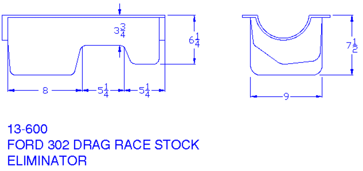 STYLE: rear sump stock eliminator pan is for Ford 289-302 blocks. This oil pan is designed for drag race stock eliminators, NMRA factory stock, and others requiring a stock appearing oil pan. Black Powdercoating